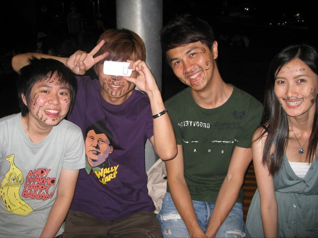 早上的課,仍然一樣枯燥乏味,只是多了許多老師用心良苦的homework,看在他這麼辛苦的出作業份上,我也是都乖乖的寫作業(有的時候,回家後和Home ma、室友、或是 Home ma 的朋友不小心聊太晚,都還要早起或是在火車上寫作業= =||)…不過,有寫有保庇啊,上課聽完,又回家練習,的確印象會深刻許多。下午的課呢,也是一樣FREE,聊天的話題一樣廣泛到不行。但奉勸諸位,不要隨便穿有英文字的T恤去上課,因為老師會問你上面是什麼意思,然後可能還會告訴你這個的文法是錯的,哈哈!! 曾經我們沒有話題可以聊的時候,我T恤上面的字就變成主題聊起來了。我們聊過各式各樣的主題,像是各國的一些…算是習俗吧!例如:中國不愛4這個數字,國外不愛13一樣,還有黑貓從你面前走過要灑鹽到背後……像是泰皇在泰國的地位非常崇高,隨便批評會被抓去關;可是台灣的前總統現在就被關在牢裡!我們學習英文,也了解各國的風俗民情。